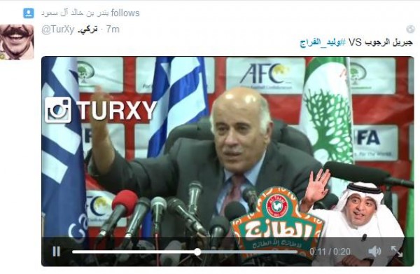 على تويتر شنّ السعوديون هجمات قاسية ضد الفلسطينيين واعتبروا ان تصرفات اللواء جبريل الرجوب اساءت للمملكة .. كما انتقد الاعلامي تركي العجمة رئيس الاتحاد الفلسطيني لكرة القدم واصفا اللواء الرجوب بـ"المجنون" .