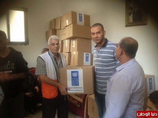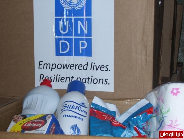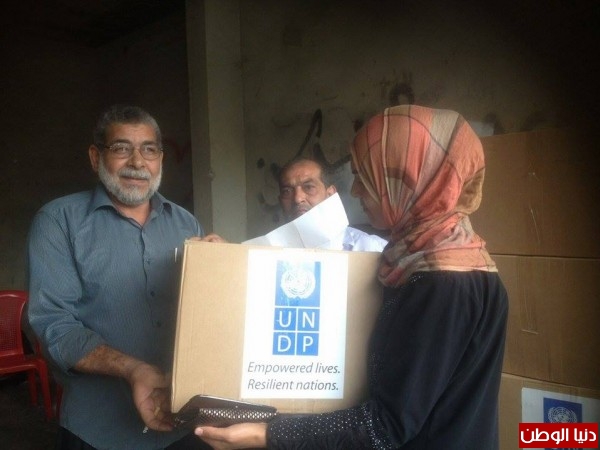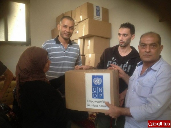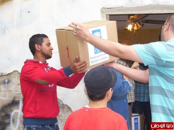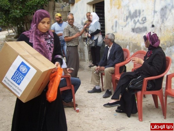 اللجنة الشعبية تشرف على توزيع معونـة (undp ) للفلسطينين المهجرين من سوريا