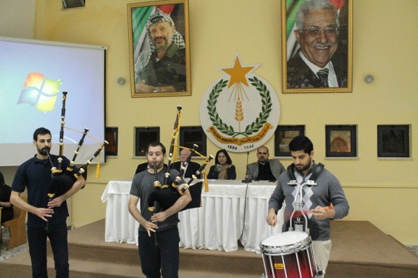 وتخلل الاحتفال عرضاً إستكلنديا قدمته فرقة (الشباب الوطنية للقرب ) من بيت لحم، بالإضافة الى عرض دبكة قدمته فرقة دلال للفنون الشعبية، تلا ذلك تبادل الهدايا التذكارية، وتوجه الجميع لحفل استقبال نظمته البلدية على شرف الوفد.