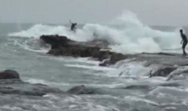 وأظهر التسجيل شاباً يدعى محمد كان يقف فوق صخرة بالقرب من أمواج البحر ليلتقط بهاتفه الخلوي هيجان البحر، قبل أن تأتي موجة كبيرة وتطمر الصخر ليسقط الشاب على ظهره، وحاول النهوض والهرب لكن كما تبين أنه أصيب في ظهره ورأسه، فحاول بعض المتواجدين في الشاطئ إنقاذه، لكن الأمواج بدأت في الارتفاع ليلقي الشاب حتفه.