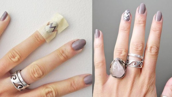 عمل رسومات الأظافر لا يحتاج إلى خبراء، فيمكنك عن طريق استخدام قصاصات لاصقة بأشكال مختلفة تنفيذ رسومات أظافر هندسية متنوعة. ثبتي الشرائط على أظافرك وفقا للتأثير الذي ترغبين في الحصول عليه ثم ضعي طلاء الأظافر واتركيه يجف ثم انزعي الشرائط.