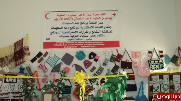 نظمت جمعية الهلال الاحمر اليمني برنامج دعم السجينات معرضا خاص بتسويق منتجات النزيلات من الاشغال اليدوية والحرف والملبوسات و البخور وغيرها من الفنون الجميلة لنزيلات السجون في ستة محافظات (صنعاء، ذمار، الحديدة، المحويت ، إب ، حجة) واللاتي تم تدريبهم وتأهيلهن على العديد من المهارات المهنية والحرفية في الاشغال اليدوية وصناعة البخور والعطور وفن التجميل ونقش الحناء وبدعم وتمويل من الصليب الاحمر الدنماركي والاتحاد الاوروبي وضمن انشطة برنامج دعم السجينات.