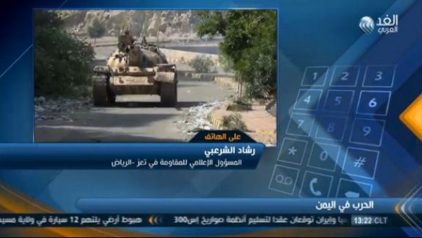 قال المسئول الإعلامي للمقاومة في مدينة تعز اليمنيّة، رشاد الشرعبي، إنّ قوات الحوثي والرئيس السابق، علي عبدالله صالح تستهدف تعز بعنف، ساعية لحسم الأمر بالسيطرة عليها قبل وصول دعم قوات التحالف العربي.