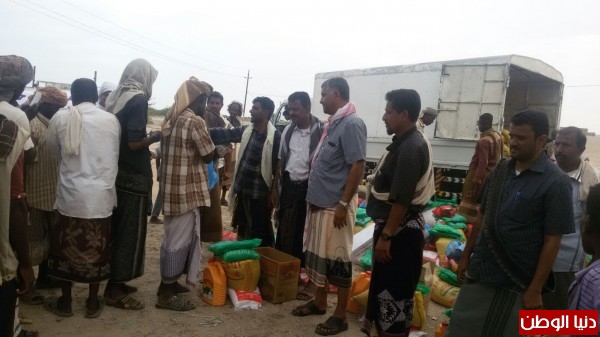 القافلة الاغاثة لابناء مديرية حبان بمحافظة شبوة تصل الي مديرية رضوم المنكوبة