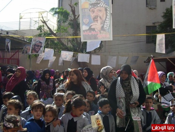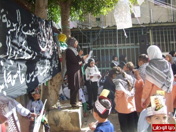 بدعـوة من روضتي " هـدى شعلان ونبيلة بـريـر" وبمشاركة اطفال وممثلين من روضة " الشهيد فالح رباح ، غسان كنفاني ، الرعاية الاجتماعية ومؤسسة الكرامة للمعوقيين الفلسطينين " ، وبحضورحشد من ممثلي فصائل المنظمة والاتحاد العام للمرأة الفلسطينية والاتحادات النقابية واللجان الشعبية ومؤسسات المجتمع المدني ، أحيا الاطفال الفلسطينيون الذكـرى السنوية (11) لإستشهاد رمزفلسطين الرئيس ياسرعرفـات ـ ابـوعمـار يـوم الثلاثاء 10/11/2015 ، برحاب روضة الشهيدة هدى شعلان التابعة للأتحاد العام للمرأة الفلسطينية بعين الحلـوة ، فتجمهر المئات منهم يلوحون بالأعلام الفلسطينية وقـد أزدانت جباههم بصور ابو عمار والوان الكوفية ، وبالتناغـم مع الأغاني الثورية والوطنية التي صدحت بها مكبرات الصوت هتفوا لفلسطين والقدس وللشهداء والشهيد الرمزابوعمار .
