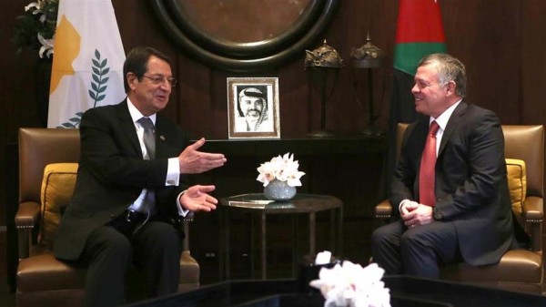 وذكرت الوكالة الأردنية الرسمية، أن الملك "عبد الله" أعرب عن تقديره لمواقف قبرص الرومية الداعم لبلاده، من خلال عضويتها في الاتحاد الأوروبي، وقال: "أتطلع قدماً إلى لقائنا وحوارنا اليوم (أمس)، واللذين من شأنهما تعميق العلاقات بيننا في شتى المجالات".