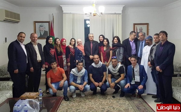 كما استقبل سعادة السفير الفلسطيني السيد أحمد عباس رمضان وكادر السفارة الوفد الطلابي وعبر لهم عن اعتزازه بما يمثله الشباب الفلسطيني المثقف والمتعلم من إلتزام بقضيته الوطنية وجديته وإصراره في اكتساب المعارف والعلوم والتسلح بها من أجل العيش برفعة وكرامة.