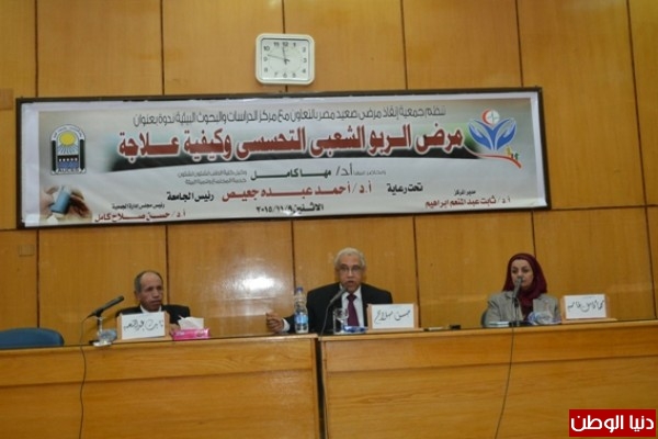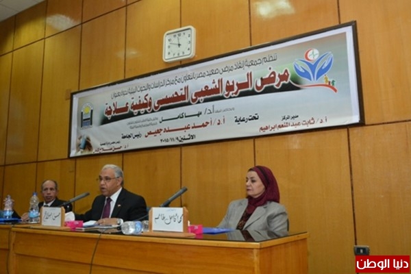 أختتمت بجامعة أسيوط فاعليات الندوة العلمية التى نظمتها جمعية إنقاذ مرضى صعيد مصر بالتعاون مع مركز الدراسات والبحوث البيئية بالجامعة تحت عنوان " الربو التحسسى .. وكيفية علاجه " وذلك تحت عنوان رعاية دكتور أحمد عبده جعيص القائم بأعمال رئيس الجامعة ، وبحضور دكتور حسن صلاح نائب رئيس الجامعة السابق ورئيس مجلس إدارة جمعية إنقاذ مرضى صعيد مصر والدكتور ثابت عبد المنعم مدير مركز الدراسات والبحوث البيئية والدكتور مها كامل غانم وكيل كلية الطب لشئون خدمة المجتمع وتنمية البيئة والأستاذ بقسم أمراض الصدر ولفيف من أعضاء هيئة التدريس وعدد من القيادات الشعبية وممثلى بعض المصانع والمؤسسات الاستثمارية بالمحافظة