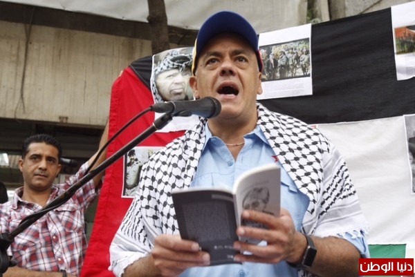 خطى القائد تشافيز وحامل رايته الرئيس نيكولاس مادورو موروس. وختم كلمته بكلمات من قصيدة محمود درويش "على هذه الارض ما يستحق الحياة".