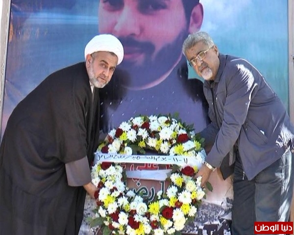 وتمّ وضع إكليل من الزهر أمام النصب التذكاري له، قبل أن تؤدي ثلة من مجاهدي المقاومة قسم العهد والولاء بالسير على نهج الشهداء.