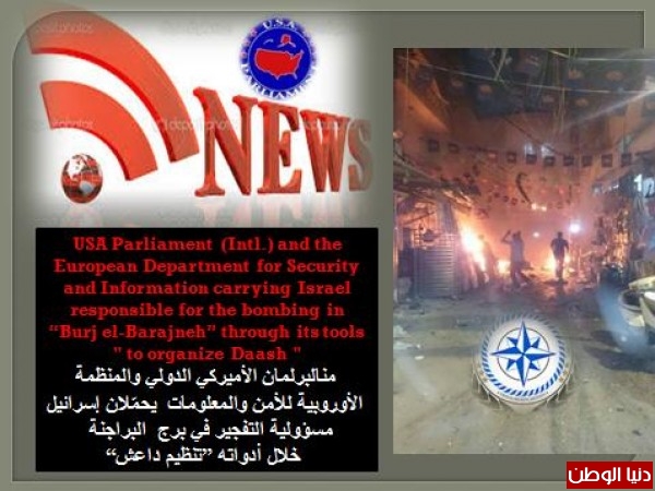 البرلمان الأميركي الدولي والمنظمة الأوروبية للأمن والمعلومات يحمّلان إسرائيل مسؤولية التفجير في برج البراجنة