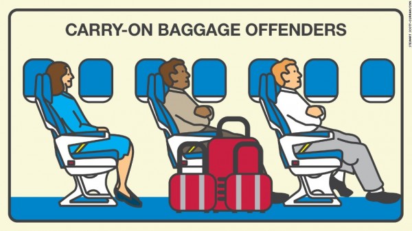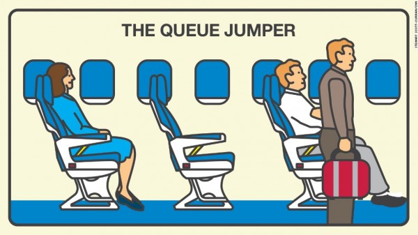 وكانت نتائج الإحصائية مشابهة كثيراً لإحصائية العام الماضي، إلا أن الشكوى من الأشخاص الذين يسارعون إلى الوقوف في الصف لحظة هبوط الطائرة تقدمت من المرتبة الـ10 إلى المرتبة الثامنة هذا العام.
