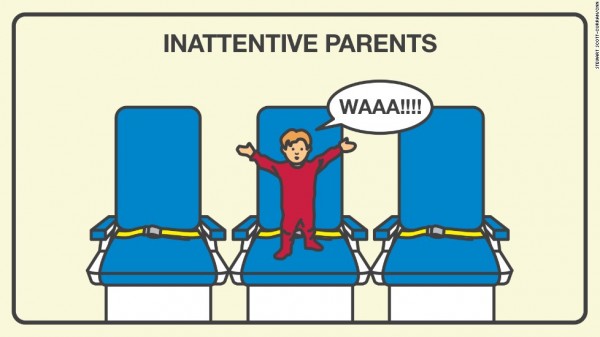 وجاء في المرتبة الثانية وبنسبة 59%، الأهل الذين يتركون أطفالهم يتصرفون بطريقة مزعجة على متن الطائرة، فيما أشار نصف الأشخاص إلى أن الركاب الذين يستمعون إلى الموسيقى بصوت عالٍ جداً، بالإضافة إلى الركاب الذين تصدر منهم روائح مزعجة، هم من أكثر الأشخاص إزعاجاً خلال السفر.