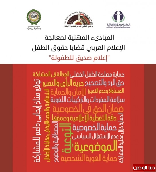 تحتضن العاصمة اللبنانية بيروت يوم 20 نوفمبر الجاري الإعلان عن المبادئ المهنية لمعالجة الإعلام قضايا حقوق الطفل العربي، والتي أعدها المجلس المجلس العربي للطفولة والتنمية بالشراكة مع إدارة المرأة والأسرة والطفولة بجامعة الدول العربية وبرنامج الخليج العربي للتنمية "أجفند"، وذلك تحت رعاية كل من معالي وزير الإعلام اللبناني السيد/ رمزي جريج ومعالي وزير الشئون الاجتماعية السيد/ رشيد درباس. حيث من المقرر أن يعقد مؤتمرا صحفياً بمقر وزارة الإعلام اللبنانية للإعلان عن تلك المبادئ المهنية، بحضور عدد من الشخصيات الإعلامية اللبنانية.