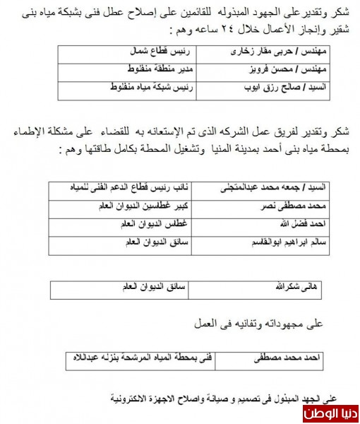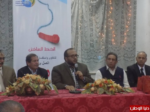 قامت شركة مياه الشرب والصرف الصحى بأسيوط مساء امس بلقاء شهرى بالعاملين بالشركة مع المهندس /محمد صلاح الدين عبد الغفار - رئيس مجلس الادارة و العضو المنتدب بمقر نقابه نادى المهندسين وبدأ اللقاء بمناقشة بعض الموضوعات العامة و الرد على الاستفسارات و التساؤلات و كذلك بعض المطالب من العاملين
