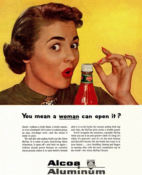 ظهرت حملات مازحة وإعلانات وملصقات صادمة ومتحيزة لاستخدام العنف والعنصرية ضد المرأة ما بين عام 1950 إلى عام 1960 ساهمت في النظر إلى المرأة على أنها شئ منبوذ وغير مقبول.