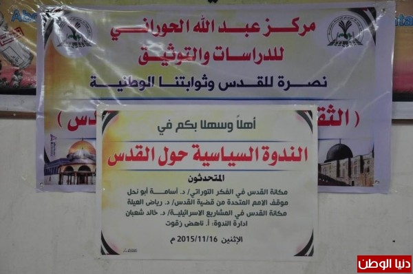 مركز الحوراني ينظم ندوة سياسية حول القدس