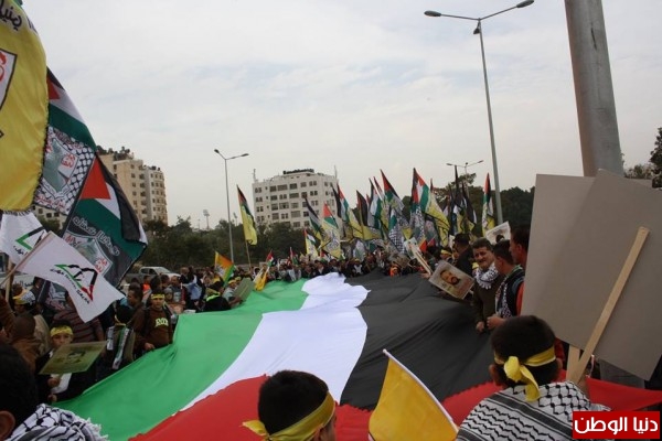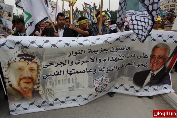 وقيادتها الحكيمة من الشهيد القائد ابو عمار الى القائد ابو مازن على تجسيد حلم اقامة الدولة الفلسطينية من خلال بناء مؤسسات الدولة وجلب التأييد والتعاطف العالمي مع القضية الفلسطينية ، وكان آخرها الاعتراف المتنامي من دول العالم بدولة فلسطين وضرورة انهاء الاحتلال ومعاقبته على جرائمه .