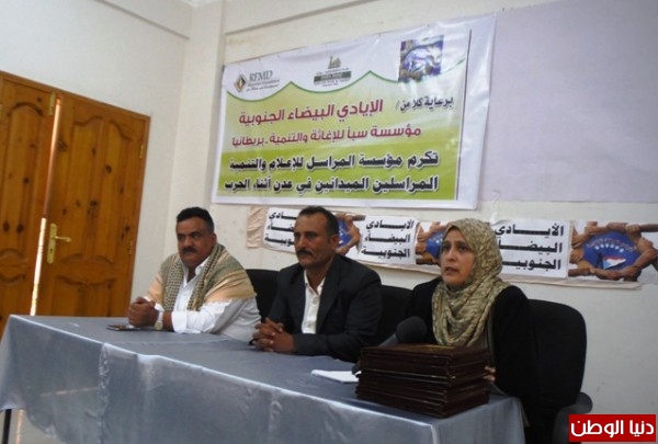 برعاية من الأيادي البيضاء الجنوبية ومؤسسة سبأ للإغاثة والتنمية -بريطانيا ومؤسسة سبل الخيرية كرمت مؤسسة المراسل للإعلام والتنمية ابرز المراسلين الميدانين المشاركين في التغطيات الإعلامية ليوميات الحرب التي شنتها مليشيات الحوثي وجيش صالح على عدن .