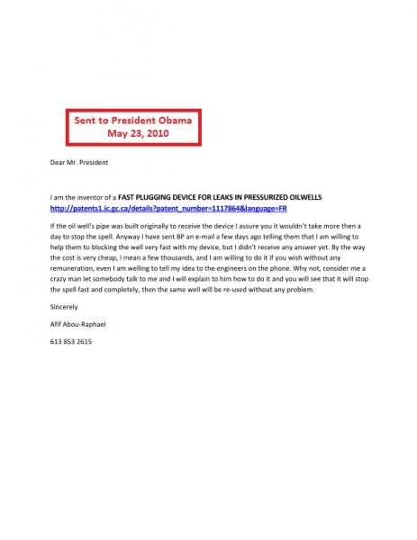 خليج المكسيك وبدأت بمراسلة اوباما على عنوان البيت الأبيض وكذلك بيل كلينتون وأيضا الدكتور" بي " وتكلمت معه وأرسلت إليه ايميلا موثقا بكل تفاصيل الاختراع وفكرته .