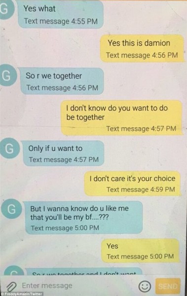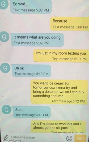 نشر الأخ الأكبر "فريدى" محادثة شقيقه عبر تويتر تحت عنوان "أهداف علاقة أخى البالغ من العمر تسع سنوات وحبيبته".