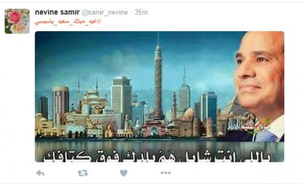 وعبر الهاشتاج تنوّعت التغريدات ما بين مهنئ للرئيس بعيد ميلاده وما بين مشاركات لأهم أعمال الرئيس السيسي وانجازاته خاصة بعد ثورة 30 يونيو الأخيرة وفوزه بالانتخابات الرئاسية الأخيرة