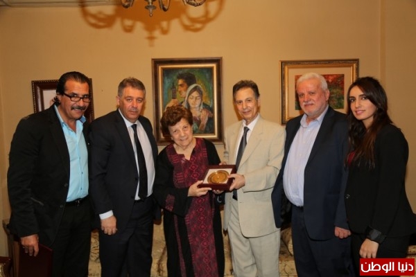 قدم الاخ عثمان ابوغرببة رئيس اللجنة الوطنية للقدس عاصمة دائمة للثقافة العربية /امين عام المؤتمر الوطني الشعبي للقدس للاستاذة المؤرخة القديرة بيان الحوت جائزة القدس للثقافة والابداع التقديرية للعام 2015 بناء على قرار اللجنة الوطنية للقدس عاصمة دائمة للثقافة العربية بحضور سفير دولة فلسطين في لبنان اشرف دبور وامين سر الفصائل الفلسطينية في لبنان فتحي ابو العردات والوكيل التنفيذي للمؤتمر الوطني الشعبي للقدس يونس عموري.