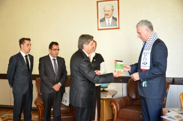 وخلال اللقاء توجه السفير عريقات الى رئيس الجامعة بأقامة معارض فلسطينية في الجامعة ، على غرار ما قامت به السفارة من معارض في مدن بيلاروسية أخرى ، وذالك لتعريف المواطنين البيلاروس أكثر عن تاريخ وحياة الشعب الفلسطيني ، مما لقي استجابة وترحيبا من رئيس الجامعة .