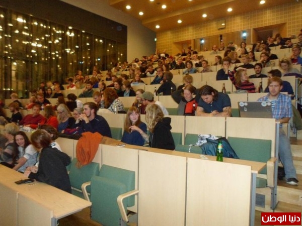 في جامعة أورهوس يوم الثلاثاء 17-11-2015 ندوة بعنوان "الحياة في الارض الفلسطينية المحتلة كما عايشتها"، تحدث فيها يوناثان جولدشتاين (Yonatan Goldshtein) عن الوضع الميداني ومعاناة الفلسطينين من جراء ممارسات الاحتلال وقطعان مستوطنيه، والاعدامات الميدانية ومصادرة الاراضي، والعقاب الجماعي، واضاف يوناثان الاسرائيليون يذهبون دون عقاب، بغض النظر عن افعالهم، اما الفلسطينيون فانهم يعاقبون بغض النظر عن افعالهم، وقال بسخرية هذه هي اسرائيل التي تدعي انها الديمقراطية الوحيدة في الشرق الاوسط.