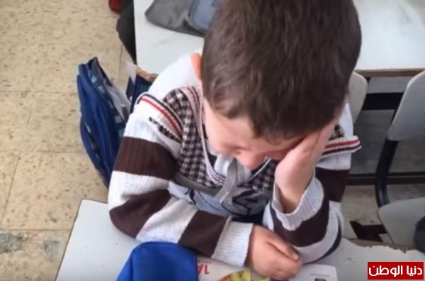 أثار مقطع فيديو تناقله نشطاء عبر مواقع التواصل الأجتماعي ,على اعجاب العديد من المواطنين ,حيث ظهر في المقطع طفل"طالب" فلسطيني من مدينة الخليل يبكي بشدة وحرقة, داخل احدى الغرف الصفية.