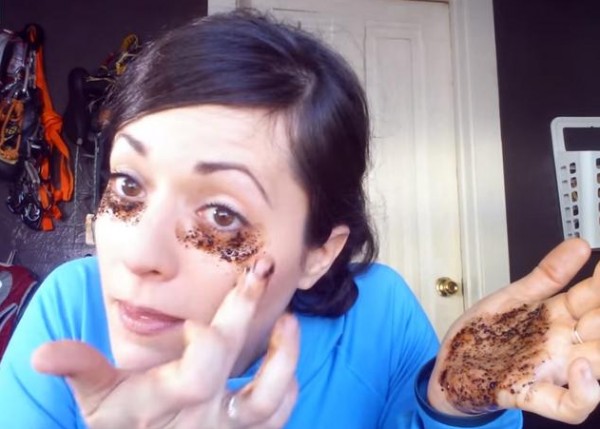 هذه الفتاة تقدم لك حل سحري وسهل الإستخدام ولن يكلفك شئ فبقايا القهوة تحتوي على مضادات طبيعية لعلاج التورم ,لهذا تقوم الفتاة بوضعها تحت العينين لمعالجة الهالات السوداء والإنتفاخ حول العينين.