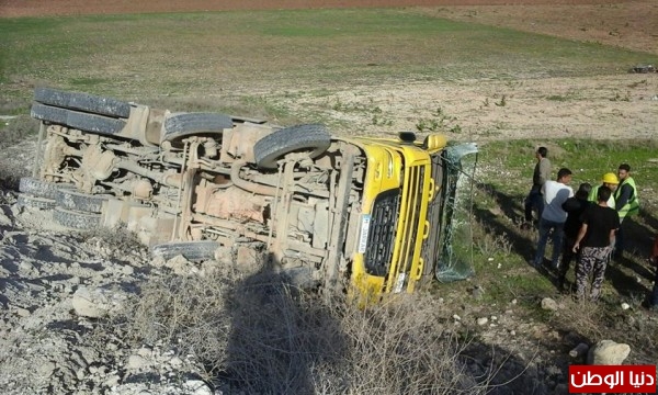 بالصور..الدفاع المدني ينقذ سائق شاحنة بعد إنقلابها جنوب جنين