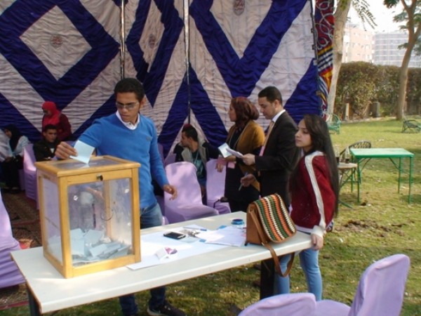 ومن جانبه صرح عز المنصوري أن الجامعة شهدت مشاركة طلابية متميزة لـ 22 كلية مختلفة من بينها 6 كليات بفرع الجامعة بالوادي الجديد , مضيفاً أن العملية الانتخابية تشهد اختيار الأمين والأمين المساعد للجان النوعية والتي تتضمن : الثقافية – الفنية – الأسر – الاجتماعية – الجوالة والخدمة العامة – الرياضية – العلمية , ويمثلها 16 طالب علي مستوي مختلف الكليات .