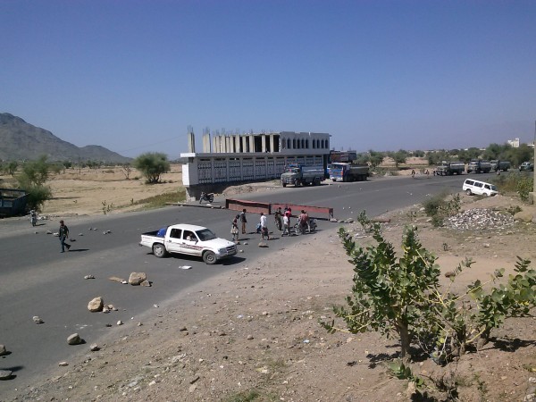 جرحى حرب تحرير الضالع يقطعون الخط العام احتجاً على اهمالهم