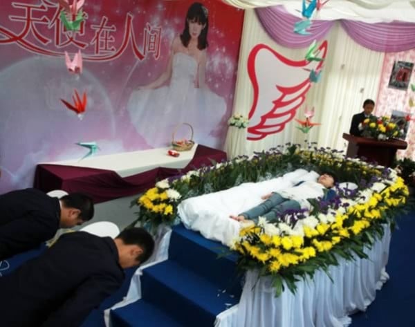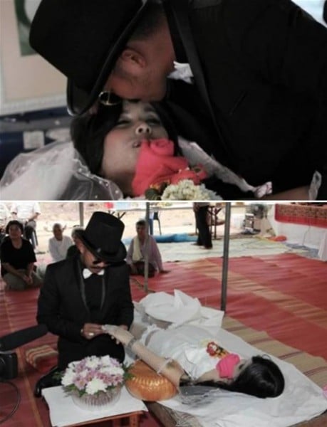 في عام 2012، تزوج رجل صديقته الراحلة في احتفال يجمع بين جنازتها وحفل زفافهما، وضع الشاب التايلاندى المعروف باسم كليف الخاتم في أصبع صديقته "سارينيا" خلال احتفال أقيم في مدينة سورين بتايلاند.