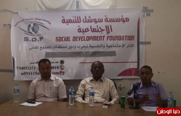 وعن دور منظمات المجتمع المدني كانت لرئيس مؤسسة "وجود" للأمن الإنساني/مها عوض مداخلة، تطرقت فيها إلى أن عمل المنظمات بحاجة للنزول إلى الميدان والتنسيق فيما بينها ومناقشة الحيثيات، وذلك بتنشيط وتفعيل شبكة الدعم النفسي والاجتماعي بدءاً من الأسرة ثم المدرسة والمنظمات الأهلية المساندة، وقالت: "إن حرب 2015م كانت أقسى تجارب العنف والظلم والاضطهاد، أجبرت منظمات المجتمع المدني أن تحمل على عاتقها دور مثقل بالهموم والمشاكل وقلة الامكانات والتهديدات، وعملت على خطة طوارئ، في الوقت الذي كان يستدعي حضور الجميع، بينما غابت الحكومة ومؤسساتها، ولا تزال حتى اليوم تتحمل تلك المنظمات قدر كبير من المسئولية، وتحاول إيقاظ دور الحكومة؛ فالمواطن هو من يدفع ثمن الحرب، ويحصد نتائجها الكارثية، بينما صناعها وسماسرتها لا يتأثرون"، مشددةً على أن الدعم النفسي – الاجتماعي للضحايا هو الجانب الأقل اهتماماً ما بعد الحرب سواءً بوعي أو بدون، بترتيبات أو بدون؛ فالدولة هشة ومقوماتها مهترئة، لم تستطع تحقيق مطالب وحقوق المواطن في حالة السلم، فما البال في حالة الحرب؟ - تتسأل عوض.