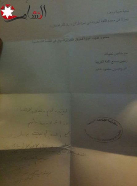 رفضت مكتبة الجامعة الأردنية استقبال اهداء لاصدار مرسل من البروفيسور محمود غنايم رئيس مجمع اللغة العربية في فلسطين المحتلة بعد أن عنون في كتاب الاهداء بـ " رئيس مجمع اللغة العربية في اسرائيل" .
