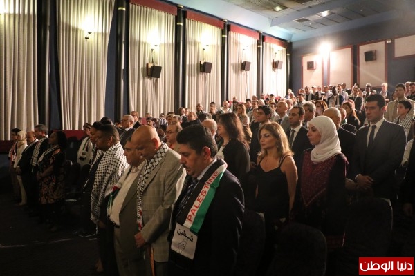 وقد افتتح الاحتفال بالنشيدين الوطنيين لدولة فلسطين* وجمهورية