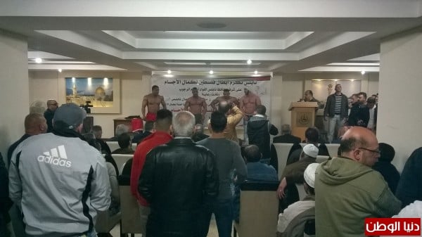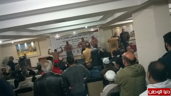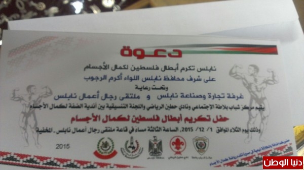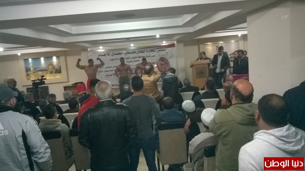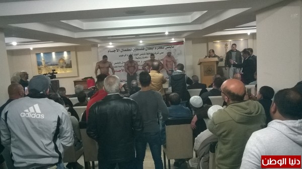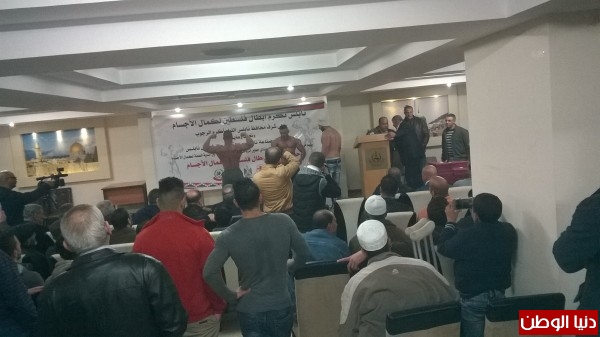 في حفل تكريم أبطال فلسطين لكمال الأجسام في قاعة ملتقى رجال أعمال نابلس المخفية.