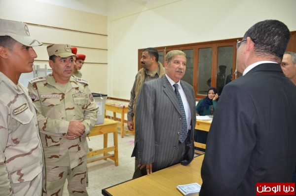 المساعد والعميد عماد عبد المولى المستشار العسكرى للمحافظة والاطمئنان على فتح جميع اللجان والمقرات الانتخابية بنطاق المحافظة وتوابعها فى التوقيتات المحددة لها فى التاسعة صباحا ووصول القضاه والمشرفين على اللجان وبدء عمليات