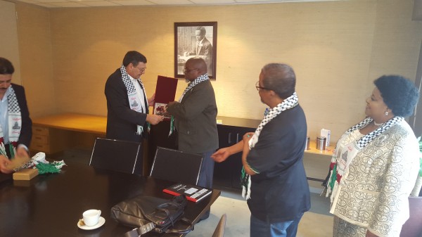 وحضر الاجتماع كذلك الاخوة بسام الحسيني وحسونة الدريملي عن السفارة وقد رحب السكرتير العام للحزب بالسفير وقدم له التهنئة باستلامه عمله سفيرا لفلسطين لدى جنوب افريقيا وتمنى له التوفيق في مهمته مبديا الاستعداد لتقديم كل الدعم لسفارتنا، من جانبه عبر السفير الدجاني عن اعتزازه بتمثيل فلسطين في دولة يجمعها مع فلسطين الشراكة التاريخية في النضال خاصة ضد التمييز العنصري مؤكدا على توصية سيادة الاخ الرئيس محمود عباس رئيس دولة فلسطين على الاستمرار في تعزيز العلاقات على مستوى الدولة والحزب.