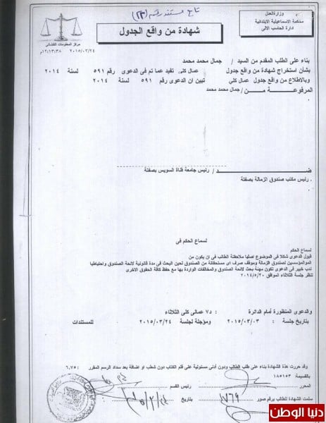 أضاف البلاغ ، ان " غراب " دفع بموظفين عموميين للدفاع عنه في قضايا شخصية في محكمة الجنح أول الإسماعيلية في القضية رقم 115 لسنة 2015م والمقامة من الدكتور جمال محمد الهنيدي ضده لعدم تنفيذ أحكام القضاء ،بإستخدام المحامى جورج اندراوس دميان محامى الجامعة لدفاعه عن رئيس الجامعة بشخصه في محكمة الجنح في كل من نقابة المحامين بالإسماعيلية ، ولدى مساعد وزير العدل .