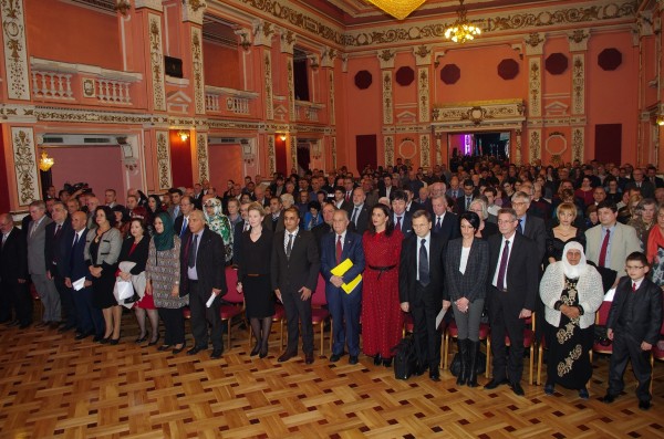 وقد أقيم الاحتفال في قاعة النادي العسكري البلغاري وسط العاصمة البلغارية صوفيا التي تزينت بالاعلام والصور الفلسطينية.