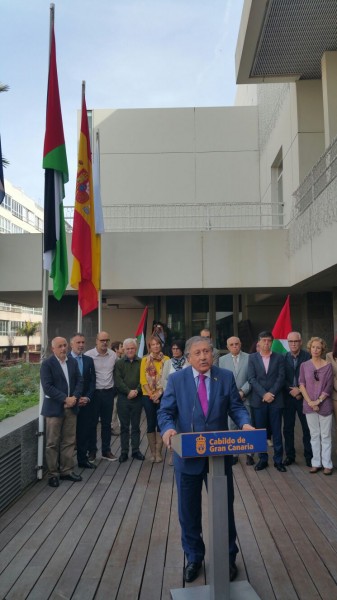 وقام السفير و أعضاء الحكومة برفع العلم الفلسطيني بجانب العلم الإسباني و علم الجزر، و ألقيت كلمات و بيان تضامني مع الشعب الفلسطيني و نضاله العادل، و حضر رفع العلم عدد كبير من أعضاء الجالية الفلسطينية و العربية و كثير من المتضامنين الإسبان ، و تعتبر الجالية الفلسطينية في جزر الكناري من أول