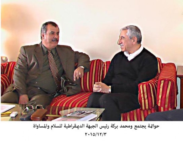 عقد نايف حواتمة الأمين العام للجبهة الديمقراطية لتحرير فلسطين مباحثات موسّعة وملموسة مع محمد بركة رئيس الجبهة الديمقراطية للسلام والمساواة، رئيس لجنة المتابعة العربية العليا، العضو العربي السابق في الكنيست (البرلمان الاسرائيلي).