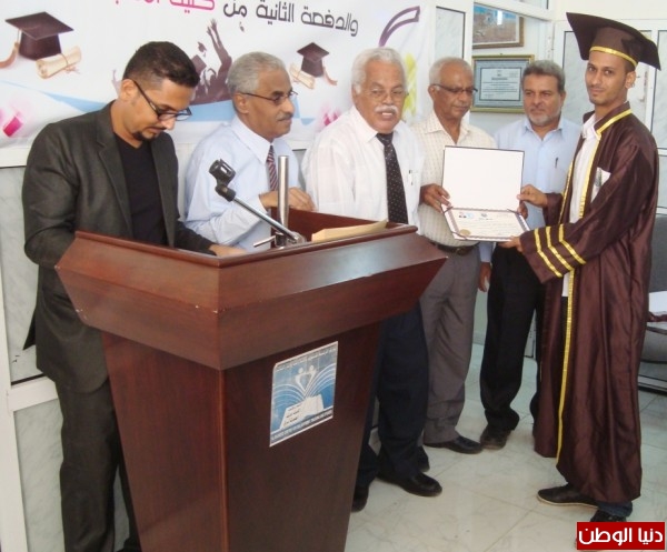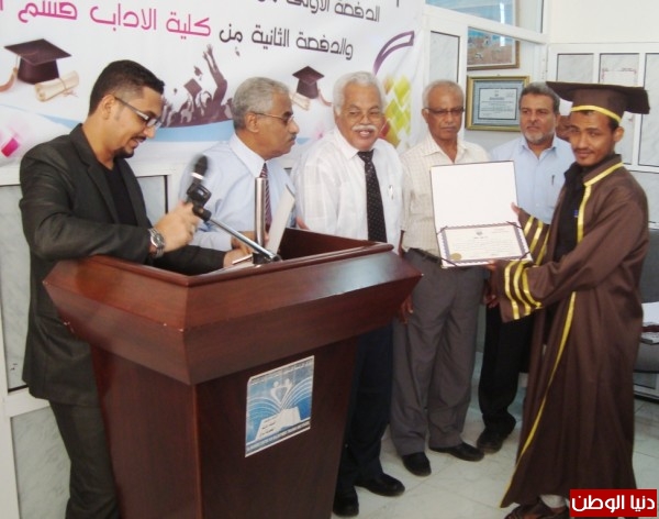 من جانبهم قام الطلاب الخريجيين بمنح شهادات العرفان والتقدير لرئيس الجامعة وعميدا كلية الهندسة والآداب..، وكذلك للأساتذة الدكتور/زيد ثابت، ويونس باهميل، وصالح كرامة، ومنية جمال، ومحمد عيدروس، ورقية عيدروس، وجمعة صالح سلمان.