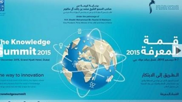 تنطلق اليوم فعاليات قمة المعرفة 2015 التي تنظمها مؤسسة محمد بن راشد آل مكتوم تحت شعار "الطريق إلى الابتكار" وبرعاية كريمة من صاحب السمو الشيخ محمد بن راشد آل مكتوم، نائب رئيس الدولة رئيس مجلس الوزراء حاكم دبي "رعاه الله". وتستمر فعالياتها على مدار 3 أيام في الفترة من 7 وحتى 9 ديسمبر الجاري بفندق جراند حياة دبي.