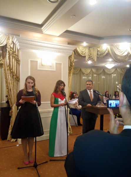 الشعب الفلسطيني بحضور أندريه زايتس رئيس قسم الشرق الأوسط وإفريقيا وبحضور السفراء المعتمدين والسلك الدبلوماسي ورجال الدين وروؤساء منظمات العمل الاجتماعي والمنظمات الخيرية وحشود غفيرة من المواطنين الاوكران وأبناء الجالية الفلسطينية وروؤساء الجاليات العربية وروؤساء الاحزاب والقوى السياسية ومن الجدير ذكره أن الحضور زاد عن 900 ىشخص .