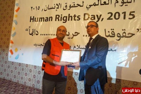 عقب ذلك جرى تكريم الاستاذ رسلي الحماطي - المدير التنفيذي لجمعية الهلال الاحمر اليمني وذلك بتسليمة الجائزة السنوية لحقوق الانسان في اليمن للعام (٢٠١٥م) .. ثم تلى ذلك قدم طفلين من برلمان الاطفال فقرة بعنوان (نداء الاطفال في اليمن) استعرضا فيها ملامح من معاناة الاطفال في اليمن، مطالبين الاطراف المتصارعة والمتحاربة لسرعة وقف الحرب، والعمل على نشر السلام والامن الاجتماعي في البلد.