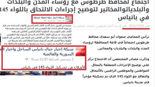 الأنباء المؤكدة جاءت من محافظة طرطوس الساحلية، بقيام محافظها بالاجتماع برؤساء الأحياء والمخاتير، لتوضيح "الاجراءات المتعلقة بالتحاق المواطنين والموظفين الراغبين بالالتحاق والتعاقد مع اللواء 145 الذي تم تشكيله أخيراً في بانياس". حيث أكد أنه سيقوم هو شخصيا بتوقيع العقود مع كل الأشخاص الموظفين في الدولة وغير الموظفين بأعمار تبدأ من 18 عاماً الى 60 عاماً!